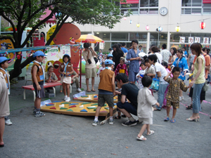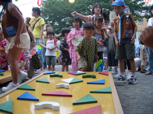 | 今日は、静岡市駿河区にある幼稚園の夏祭り この園を卒園したスカウトは、7名。 入隊予定の年長さんが、4名。 とってもお世話になっているので、 毎年、夏祭りに、ボーイスカウトコーナー として、ゲームコーナーを出店させて いただいております。 今年で、5年目くらいです。 |