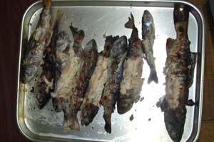 | このやまめの塩焼きは何だ。 これが、おかずなのか? |
