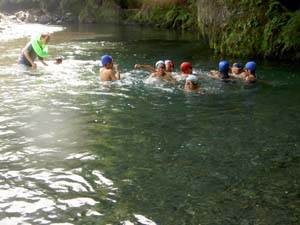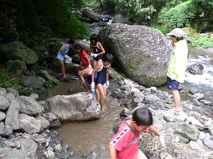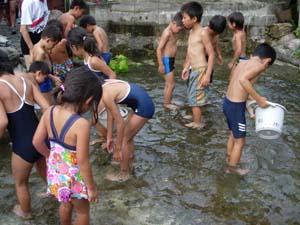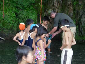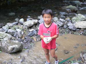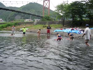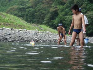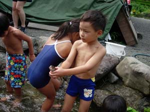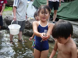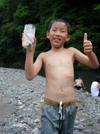 | カブ隊は、川で捕まえるのか? 大丈夫か? |