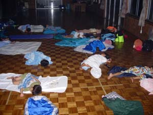 | カブ隊が、なにやら???? | レースのようだぞ。 | そうか!! 先月の集会で作った船の レースをしているんだ。 でも、ちょっと・・・・・ |
