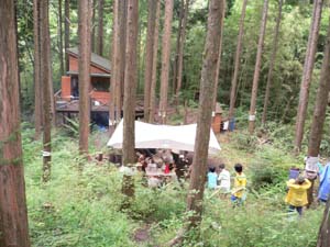静岡市は藁科川 (わらしながわ)の上流、 ここの公民館と 周辺をお借りしてのキャンプです。 |