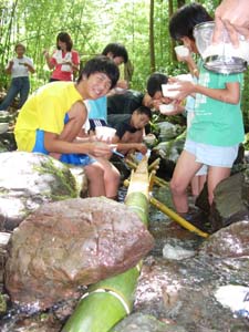 | 恒例?の流しそうめん 設備は、クラフト。 さすがボーイ隊!!! |