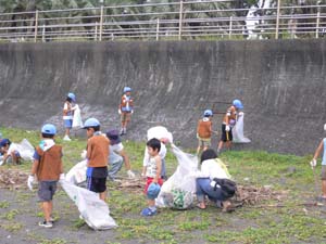 | 台風の影響で、 多くのごみが流れ着いていました。 |