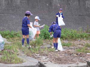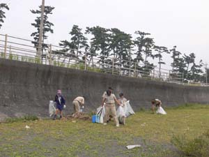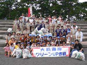 | 今日の集会は「スカウトの日」 市議会議員である丹沢団委員の事業と協働です。 静岡の大浜海岸を清掃しました。 |