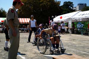 | 障害者もった方も、健常者も 一緒に遊びましょうという主旨。 車椅子体験もできます。 |