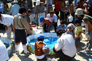 | ここは、ザリガニつりコーナー。 たくさん取れました。 お土産どっさり。 |
