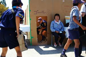 | ダンボールの迷路もありました。 やっと出てきた?カブスカウト。 |