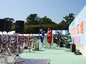 | おっと、ビーバー隊を忘れてた。 ステージのスンプレンジャーショーで、 大盛り上がり。 |