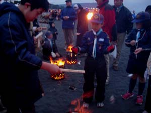 | 恒例の初日の出集会。 起きるのがやっとのスカウトも・・・・ 寒いので火がありがたいです。 |