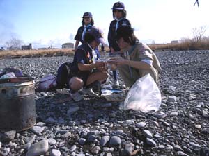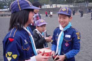 | おいしい後は、この笑顔。 今年も楽しいスカウティングをね。 |