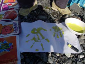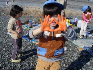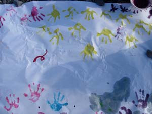 | 手や足、指を筆にして、芸術作品完成。 普段じゃ怒られるけど、 集会ならありですね。 |