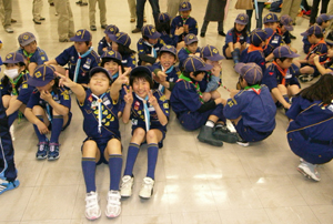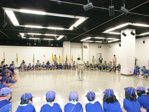 | そうです。今日は、静岡地区のカブラリー。 あいにくの雨なので、式典は室内。 大勢集まって、まさに”大輪” 各団が集まっても、すぐに心はひとつ。 さすがスカウト!!!!! |