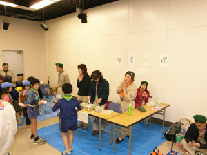 | その後は、世界に広がるスカウト運動を実感。 各国料理コーナー。 ここは7団。 インド料理だ。 |