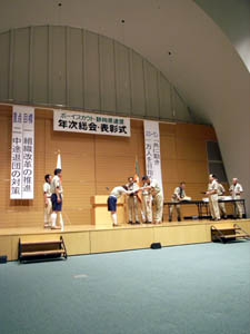 | 総会で表彰された26団のメンバーです。 県連有効章を2名のリーダーが受賞しました。 |