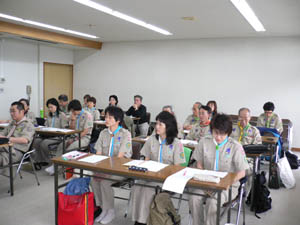 | この日の午前中に、リーダーは 地区の研修会に参加しました。 研修テーマは「スカウト募集」 ジャンボリーに向けて、いかにスカウト人口を 増やすか、各専門家のご意見を伺いました。 |