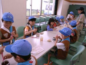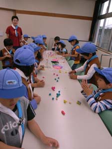 | ビーバー隊の集会は、残念ながら雨。 梅雨だからしょうがないか!! 先ずは、小麦ねんどで、いろつくり。 そして、様々な造形。 |