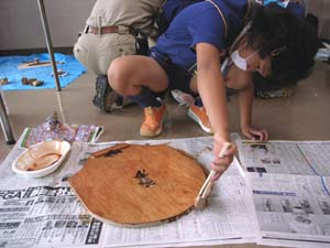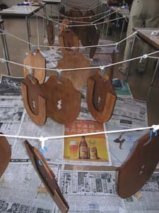 | そして、ニスでお化粧!!! 勿論水性です。 マスクもしてます。 換気もしました。 |