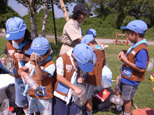 | 各自が作った”ヌカビン” 材料は、ペットボトル。 えさは、各自のアイデアで。 |
