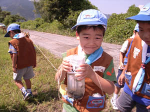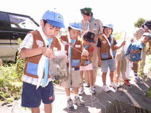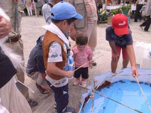 | 沢蟹釣りもありました。 なかなか取れません。 採ったカニは、しっかり飼ってね。 |