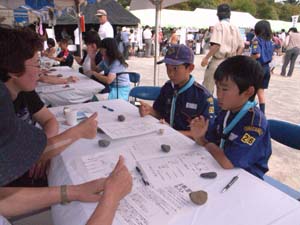 | 上進予定のくまスカウトも仲間です。 班毎に真剣に話し合ってます。 ものすごいアイデアが出てましたが・・・・・ |