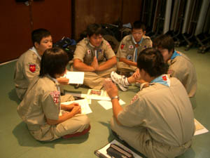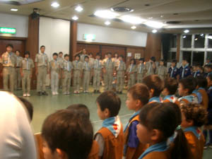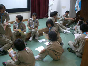 | そして新メンバーによる集会。 ボーイ隊の班集会。 |