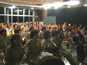| 引続き団育成会総会も行われ、 前年度の事業報告、決算報告。 本年の事業計画が承認されました。 スカウトも自分の事として、しっかり参加します。 |