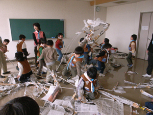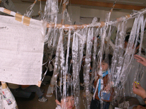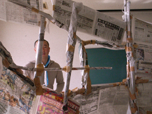 | ビーバー隊のお城作り。 材料は、新聞紙とテープ。 どんなものが出来るのだろう???? |