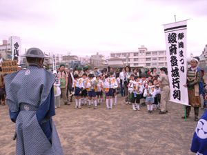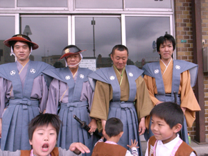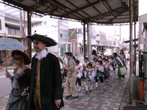 | オランダ商館長のお供に扮した カブ隊、ビーバー隊。 衣装が最高です。 |