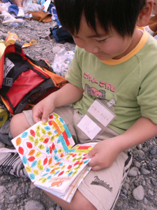 | 集会が終われば、進級の時間。 木の葉章も、いっぱい集まったね。 もうじき、ダム賞かな> |