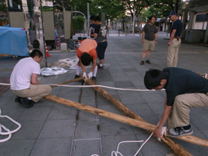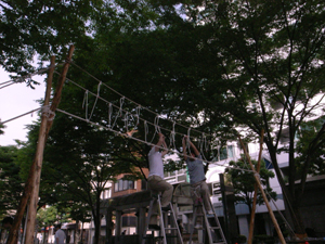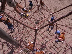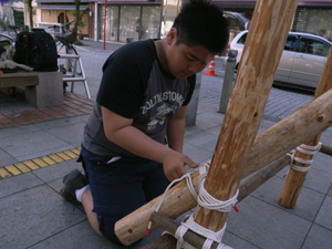 | 奉仕のベンチャースカウトは、 朝6時からの作業で モンキーブリッジを作りました。 さすがです。 |