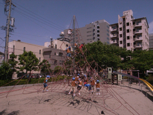 | パレード後は、公園で遊びました。 くもの巣みたいな遊具です。 |