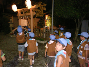 | ビーバー隊も夜の集会。 今日は、智の輪くぐりに参加?? |