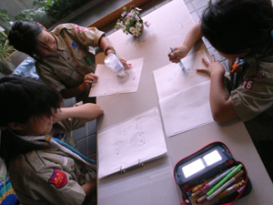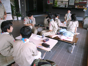 | ボーイ隊の班集会。 キャンプの予定を決めています。 |
