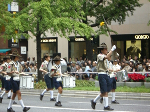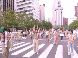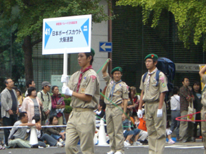 | 今年も、大阪御堂筋パレードに参加です。 スカウト運動100周年を祝うパレード 大阪連盟の人たちと、コラボしました。 |