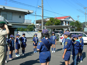 | スカウトのPRをかねて、 隊旗、輪回し、外国の制服を展示です。 みんな気合が入って、カッコ良かったです。 |