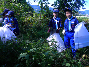 | カブ隊も隊集会。 今日は、安倍川の カブ森へ清掃奉仕に行きます。 カブ森は、大きな木もあって、 基地を作ったり、 ターザンごっこをしたり。 楽しい場所です。 |
