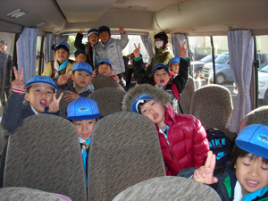 | ビーバー隊は、 冬のバス遠征!!!!! 楽しく出発だ! |