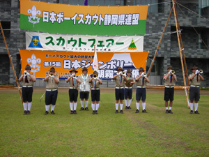 | 国歌を吹奏しました。 人数が少ないですが この日は、ボーイ隊が キャンプ中 さびしい限りでした。 |