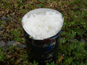 | 夏のキャンプに向けて 炊飯の練習。 すごい。 ちなみに、これは 缶ライスと言う方法です。 でも、基本は、 飯盒炊爨と同じです。 |