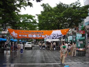 | ジャンボリーの開催もPRします。 しかし、当日は警報が出るほどの 春の嵐。 残念ながら、集会と パレードは中止になりました。 |