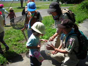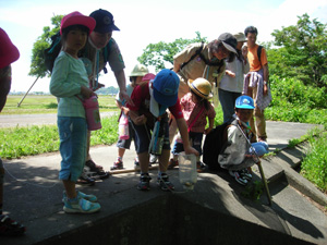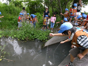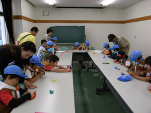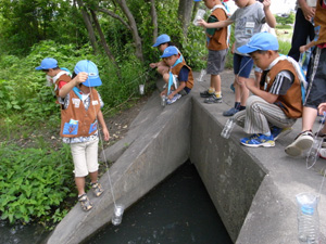 | みんな、一生懸命でした。 釣果の方は 取れた子もいるし、取れなかった子も 今度がんばろうね。 「またやりたい」 「帰りに、もう一度やってく」と 評判もなかなかでした。 |