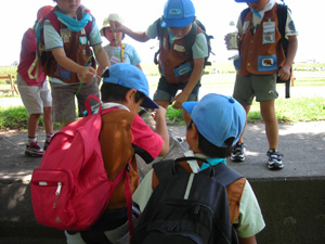 | 今週のビーバー隊は、 先週に引続き、川に魚を 取に行きます。 |
