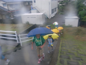 | 最初は、かさをさしたり カッパを着ていましたが・・ |