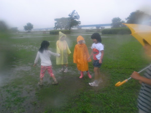 | すごい事になりました。 みんな、とっても楽しそう。 梅雨時は雨を楽しんじゃえ!!! 大歓声が聞こえた集会でした。 |