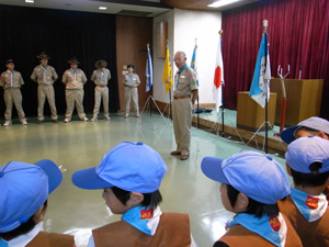 | ボーイ隊への上進です。 ちかいをたてます。 ローソク1本1本に 心をこめて。 スカウトにとって、 最も大事な瞬間です。 このちかいは、一生、 記憶していてください。 |