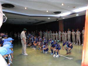 | 真新しい制服に身を包み カブ隊へ上進していきます。 カブ隊へ、 ロープを飛び越えていきます。 |