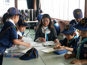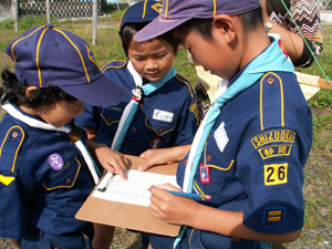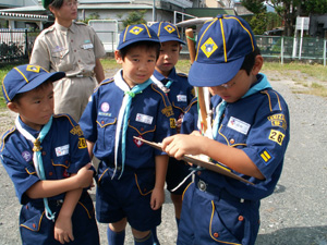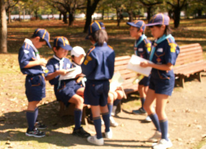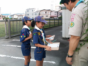 | 組長は、出席を把握して 隊長に報告です。 新組長、みんなしっかり出きました。 |