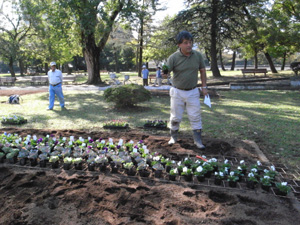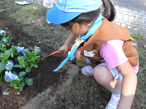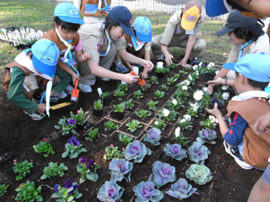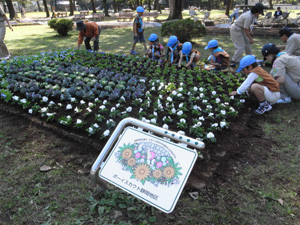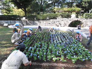 | みんな真剣です。 静岡の中心部にある駿府公園。 そこに、花壇を作るのfです。 |