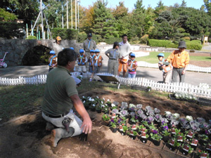 | お花の先生から、 花の植え方の説明を受けました。 |