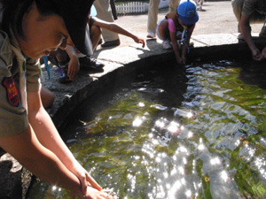 | 公園内の泉で手を洗いました。 冷たくて気持ちよかったです。 |